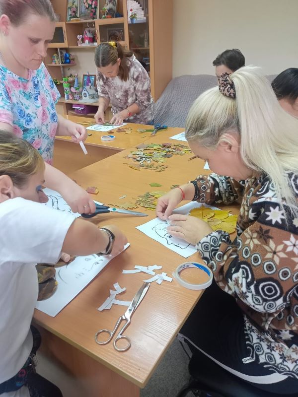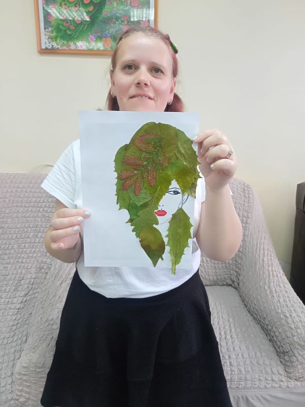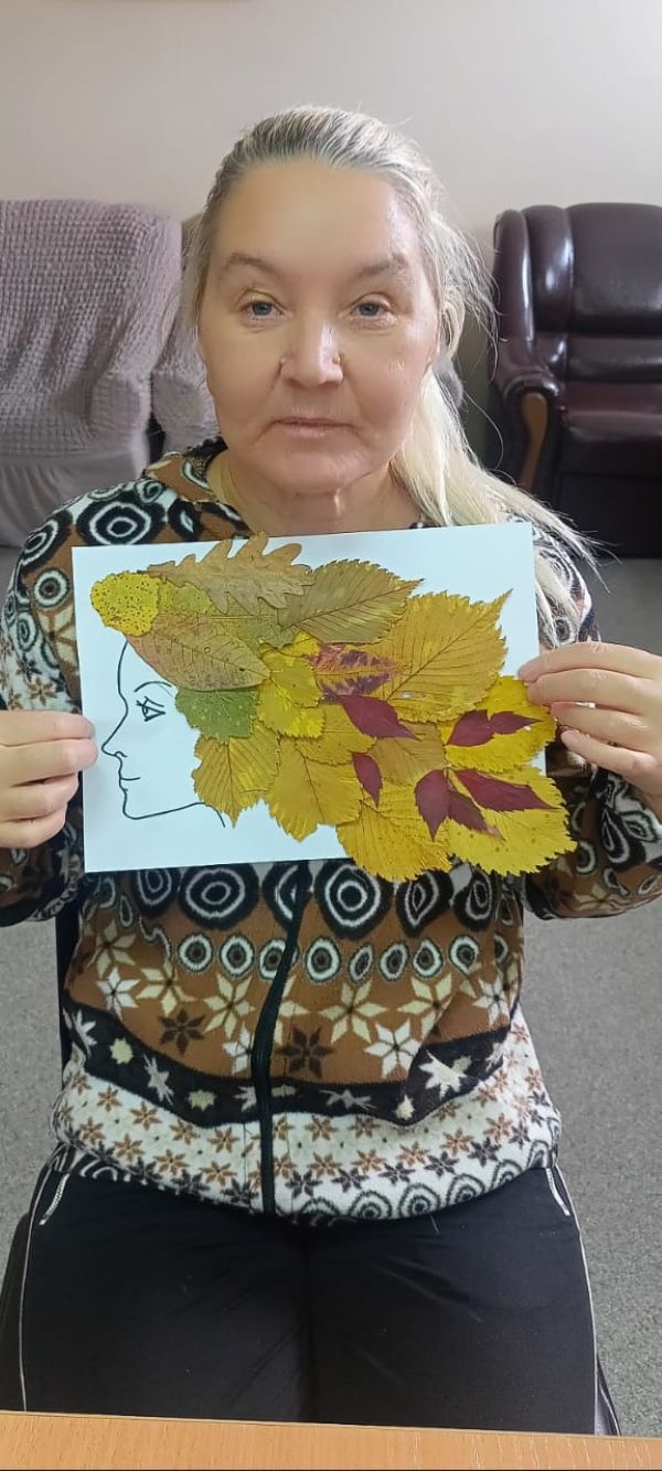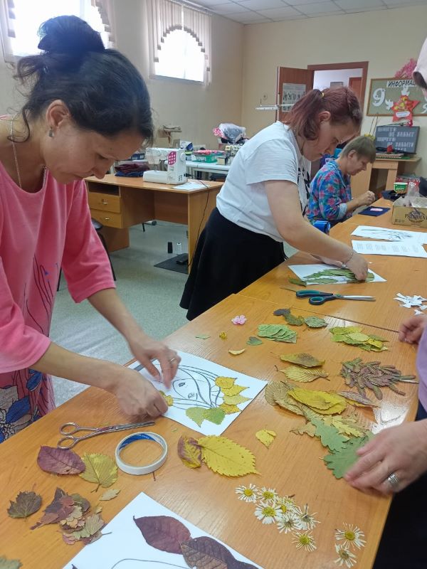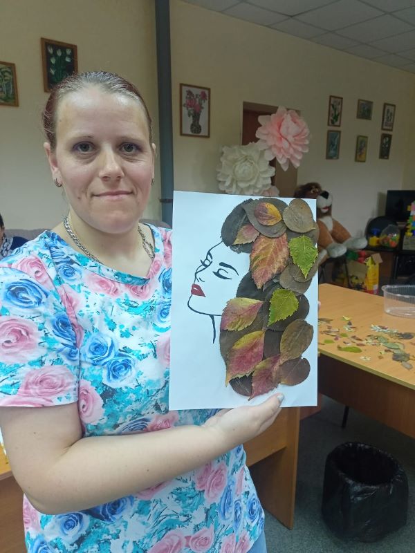 Осенние листья – прекрасный материал для творчества и изготовления осенних поделок. Осенняя палитра красок привлекает, радует глаз и вдохновляет на творчество. Вот и мы с получателями социальных услуг организовали сбор осенних листьев, затем высушили их для применения в дальнейшей работе. Ну а дальше открылся настоящий салон красоты! Девочки делали необычные аппликации из заготовленных листьев, создавая модные прически девушкам на фото. Выбрав образ, подбирая форму, цвет и фактуру листьев, ребята моделировали разные прически – от аккуратных укладок до пышных кудрей и модных асимметрий. Многие участники проявили неожиданную фантазию, комбинируя листочки с засушенными цветами и бумажными элементами. Такое творческое сочетание позволило создать имитацию заколок и украшений для прически. Каждая работа получилась уникальной, «модной» и неповторимой, подчеркивая индивидуальность каждого автора.