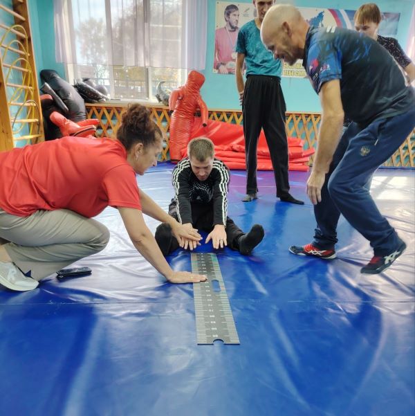 Наши ребята тоже присоединились к движению ГТО. После разминки они сдали нормативы комплекса соответствующей ступени: бег на 30 м, прыжки в длину с места, упражнения на гибкость и пресс и другие нормативы. В результате все участники успешно прошли тестирование.