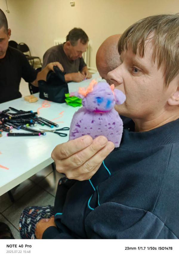 С получателями социальных услуг КГБУ СО «Боготольский психоневрологический интернат», под руководством культорганизатора А.В. Игонькина и психолога А.С. Кошкарёвой, был проведен мастер – класс по изготовлению игрушки – антистресс из обычной губки для мытья посуды. Участники мастер – класса остались довольными и получили заряд положительных эмоций, некоторые ребята игрушку оставил себе, а кто – то подарил маломобильному получателю социальных услуг.