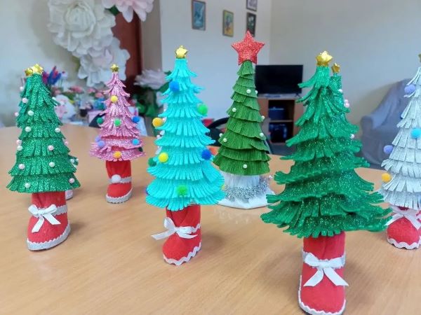 Ребята с увлечением работали над созданием поделки: аккуратно вырезали детали, формировали ряды веточек и собирали свои елочки по шагам. В процессе все участники освоили технику работы с фоамираном – нагревание для придания формы, склейку и декорирование. Получившиеся елочки украсили бусинами и «посадили» в сапожок Деда Мороза, над которым тоже пришлось потрудиться. Мастер-класс помог развить творческое мышление, напомнил всем участникам о приближающемся новогоднем празднике и подарил всем радость созидания.