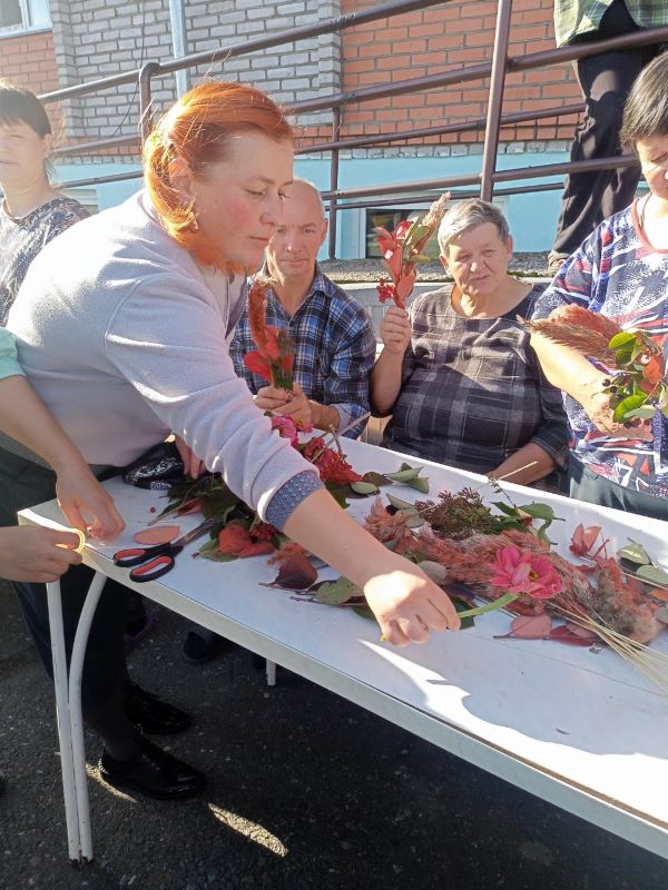 Настоящий праздник осени организовали специалисты Культурно-досугового центра с. Боготол для наших получателей социальных услуг. Погода в этот день радовала своим теплом и ярким солнцем, поэтому мероприятие прошло на улице. Ребята принимали участие в разнообразных командных играх, слушали, подпевали и танцевали вместе с ансамблем «Родники народные». Особенный творческий момент пришелся на составление осенних букетов – ярких композиций из собранных природных материалов, что позволило глубже прочувствовать красоту и разнообразие осенний природы.