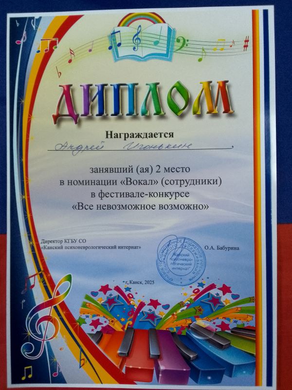 2 место – культорганизатор Игонькин Андрей Владимирович в номинации "Вокал сотрудники",